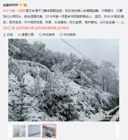 ?編者按:剛被紅葉上色的秋意,就讓雪景換了新裝。林間的小道都被白雪輕輕地覆蓋,朝霞的倒影跟山上的雪景,相映生輝,立刻進入秋景與冬景一齊上映的畫面,你趕上了嗎?西安沒下,你那里沒趕上,先看看照片,一睹為快!