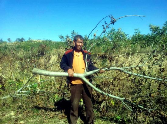 習(xí)春科說:“西坡村被列入合陽縣核桃林示范基地項(xiàng)目,2008年,縣里向村民無償提供了果苗,經(jīng)過7年過培育,核桃樹已進(jìn)入初果期。去年他家5.5畝果林收入2千余元,今年收入了8千多元,生活剛得到了一些改善。兒子出外打工收入低,果園成了家里唯一的經(jīng)濟(jì)來源。現(xiàn)在果樹被人砍了,我們以后用什么來養(yǎng)老啊!”