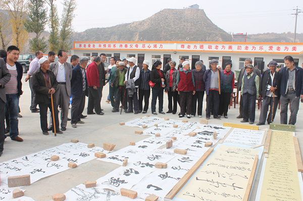 10月21日,農(nóng)歷九月初九重陽(yáng)節(jié),陜西省新聞書(shū)畫(huà)家協(xié)會(huì)組織協(xié)會(huì)成員來(lái)到榆林市榆陽(yáng)區(qū)古塔鎮(zhèn)張大溝村老年幸福院,為張大溝社區(qū)40余名空巢老人現(xiàn)場(chǎng)創(chuàng)作書(shū)畫(huà),送上節(jié)日的祝福。