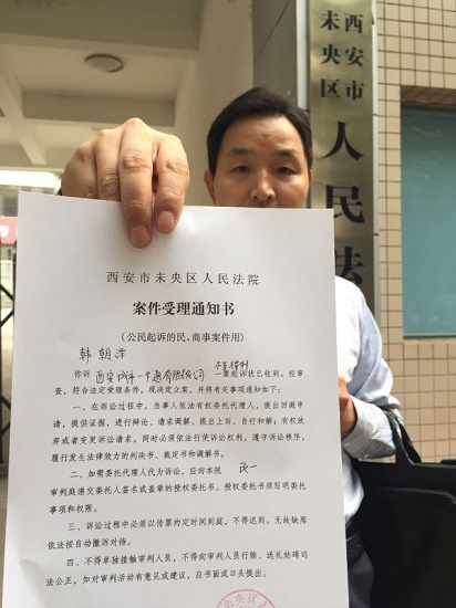 昨日下午,西安市未央?yún)^(qū)人民法院經(jīng)審查,該案符合受理?xiàng)l件,已經(jīng)立案。