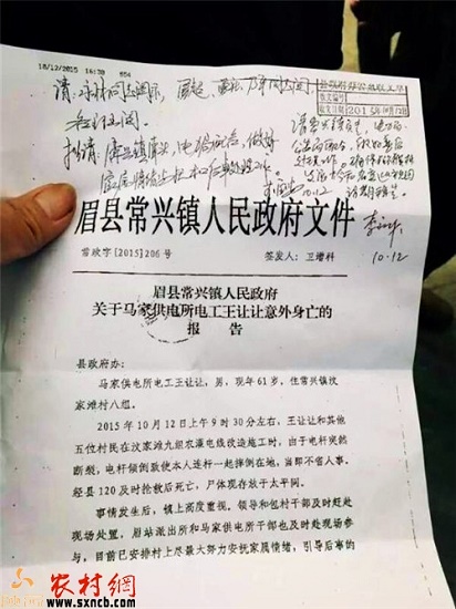 眉縣常興鎮(zhèn)關(guān)于電工王讓讓意外死亡給縣政府辦的報告