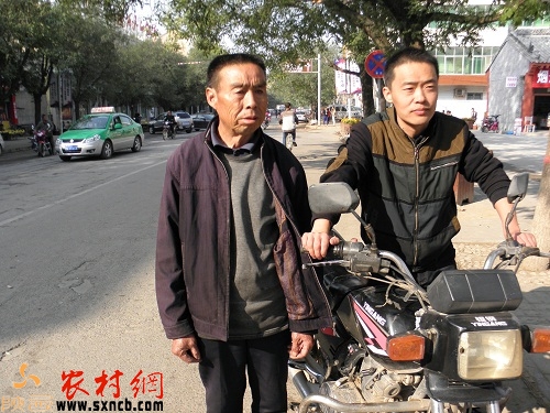 袁明起(左)和周彥榮在乾縣街頭等待勞動(dòng)部門(mén)處理