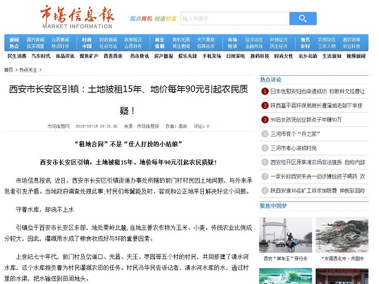 西安市長安區(qū)引鎮(zhèn):土地被租15年、地價每年90元引起農(nóng)民質(zhì)疑!