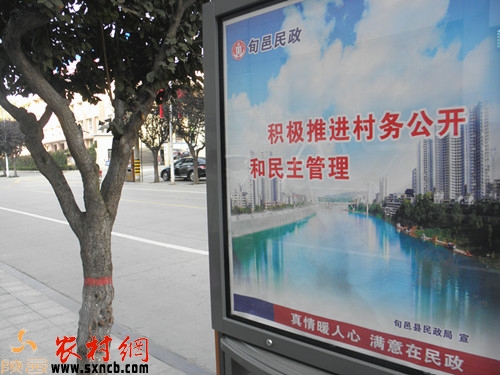 采訪中,記者看到,縣民政局在街道宣傳欄里宣傳的圖案上顯示“積極推進村務(wù)公開和民主管理”、“真情暖人心、滿意在民政”等字樣。