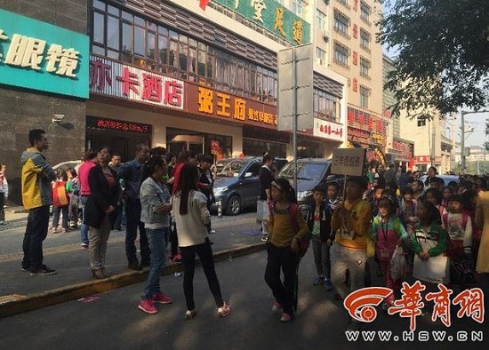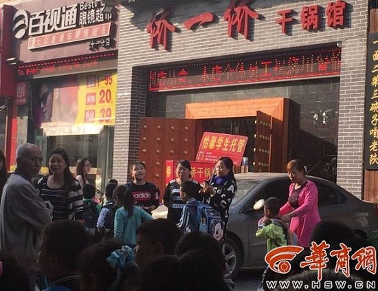 下午4時許,托管班的工作人員舉著牌子在西關(guān)第一小學(xué)門口接孩子。校門口值守的一名女老師說,學(xué)校不辦托管班,也不管托管班,家長要找,可以放學(xué)的時候在校門口了解。