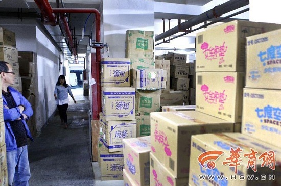 記者大概數(shù)了數(shù),施工區(qū)占的車位大約二三十個;在負二層,寬闊的停車場地沒有停放一輛車,東側一排已經(jīng)被改成了倉庫,里面存放著不同類別的物品,有衛(wèi)生紙、衛(wèi)生巾,也有小食品。