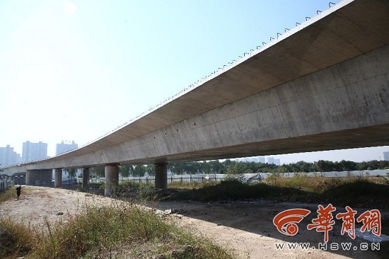 然而10月12日上午,華商報(bào)記者來(lái)到風(fēng)雨廊橋建設(shè)工地,發(fā)現(xiàn)該工地仍處在停工狀態(tài)。根據(jù)該工程概況,2013年1月開(kāi)工,2015年1月完工,如今早已超出工期,而大橋僅完成橫跨渭河的主體部分,并沒(méi)有設(shè)計(jì)圖中的雙層橋面結(jié)構(gòu)以及廊橋造型。