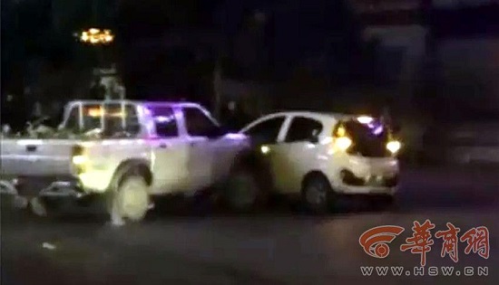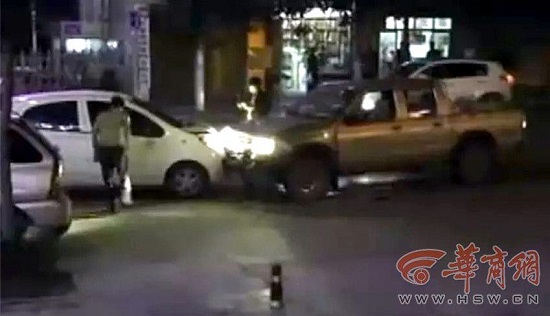 兩車同一車道迎面相撞,其中一輛車上的一名男子赤裸上身手持木棒砸車,要求對方下車未果后,竟發(fā)動(dòng)皮卡車連續(xù)撞擊對方轎車12次。安康警方調(diào)查后發(fā)現(xiàn),肇事者中的一人竟是當(dāng)?shù)匾绘?zhèn)人大代表,當(dāng)時(shí)兩人均處于醉酒狀態(tài)。