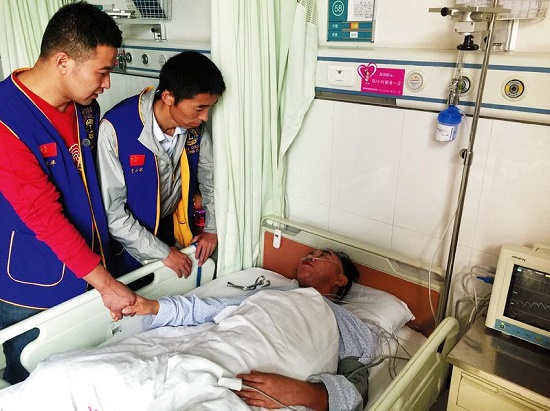 一些得知情況的愛心人士來到醫(yī)院看望他,愛心人士賈小剛捐款2000元,“陳緒水和他的志愿隊從事環(huán)保志愿工作和幫助失學(xué)兒童、因病致貧家庭,幫扶了三四千人,現(xiàn)在他遇到難處,大家應(yīng)該幫他挺過難關(guān)?!?4歲的李靠在醫(yī)院照顧堂哥,聽說此事后立刻發(fā)到朋友圈,“希望把這份愛心傳遞下去,好人應(yīng)該有好報?!?