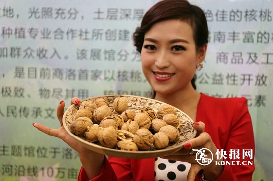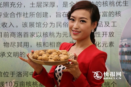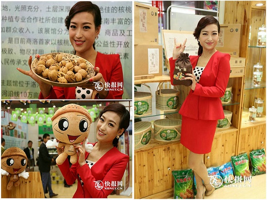當(dāng)天,在商洛核桃展銷推介會上,快報網(wǎng)記者偶遇一身穿紅裙的女子,被諸多參展商邀請前去拍照。后經(jīng)了解,原來這位美女名叫謝菲,是商洛電視臺的主持人;她也是專程來西安參與商洛核桃展銷推介會主持工作的。在展會現(xiàn)場,謝菲儼然成了一道靚麗的風(fēng)景,大家都希望她能為商洛核桃多作推介。記者隨之跟拍,謝菲也很熱情地為家鄉(xiāng)的核桃做代言。