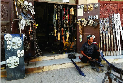 鐵器制造在喀什是一種文化,千年之前喀喇漢王朝非常興盛,緊鄰?fù)鯇m的“喀日克大門”(打靶之門)里,有士兵經(jīng)常列隊(duì)出操,于是,這一帶遍布修理兵器的作坊,后來逐漸演化成了傳統(tǒng)民族手工業(yè)。