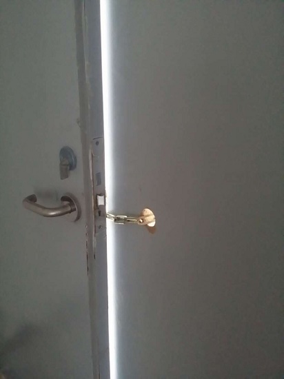 從門頂鐫著“光運(yùn)*北歐”字樣的大樓西門進(jìn)入,接受完保安的問(wèn)詢,記者乘電梯直達(dá)22樓。出電梯,裸露的消防箱映入眼簾,沒(méi)有蓋子的箱體里只有龍頭,沒(méi)有水帶,沒(méi)有滅火器。有工人正在裝修,兩處步行樓梯門(消防通道)被鏈條鎖死死鎖著。因步梯無(wú)法通行,記者乘電梯探查了21、20等5層,結(jié)果發(fā)現(xiàn),消防通道無(wú)一不被鎖死。