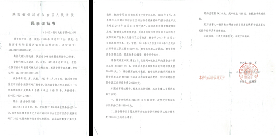 隨后,60多名農(nóng)民工將李保明起訴到印臺區(qū)法院。在法院的調(diào)解下,雙方達(dá)成了調(diào)解:“李保明在2013年11月20日前一次性支付農(nóng)民工工資88萬元?!?0多名農(nóng)民工感到有了盼頭。