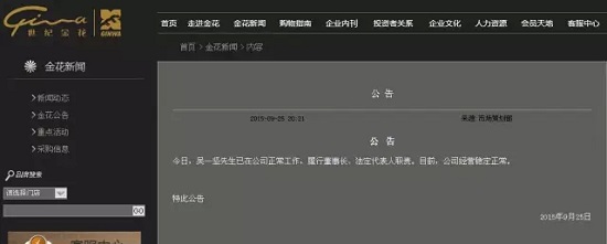 世紀(jì)金花官網(wǎng)9月25日已經(jīng)就此事發(fā)布公告。