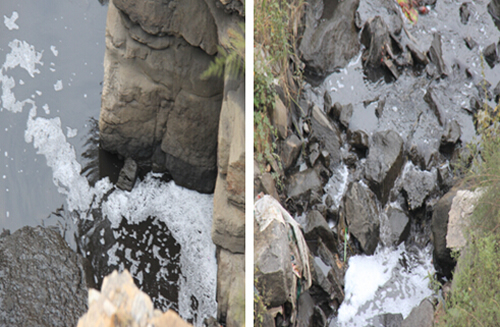 當行動中心工作人員進入該企業(yè)時,首先看到的是“百業(yè)要興,環(huán)保先行”幾個大字。表面上宏盛聚德把環(huán)境治理放在了工作首位,可根據(jù)舉報者提供的線索,行動中心走到企業(yè)廠房后面時,遠遠就能聞到刺鼻惡臭味。行動中心工作人員走近觀察到,一橋下近兩米的水泥管道中,烏黑泛著白沫的污水源源不斷地從宏盛聚德廠區(qū)向外流,工作人員順著“河流”走了15公里左右,小河里黑濁的污水一直朝下游流去,最后直接匯入了黃河。