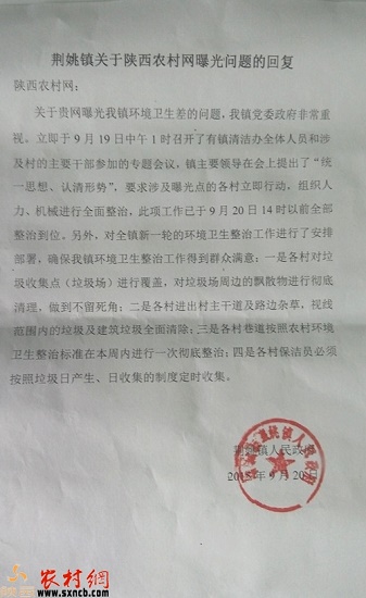 荊姚鎮(zhèn)針對農村網垃圾報道的回復