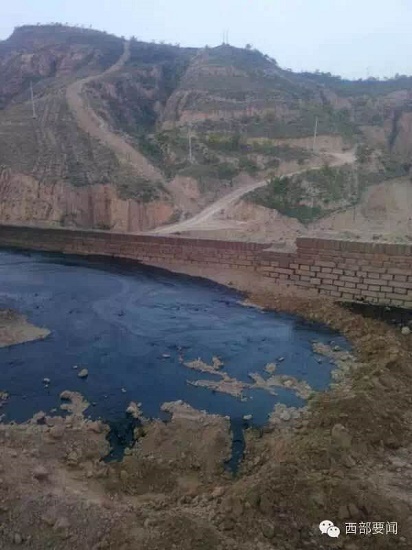 投訴人反映:原油泄漏數(shù)量很多,污染面積很大,污油順著山坡流入河中。