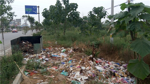 蘇坊鎮(zhèn)宣傳標(biāo)語不遠處的垃圾