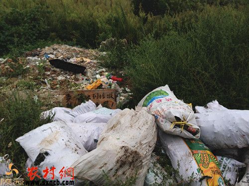 在三渠鎮(zhèn)廟張村,道路旁邊大片的生活垃圾無人管