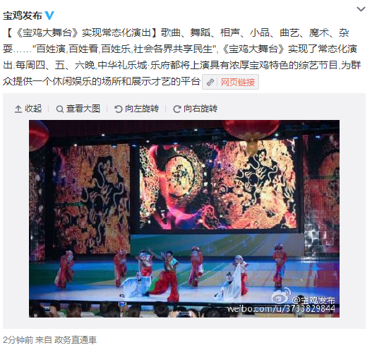 寶雞發(fā)布【《寶雞大舞臺(tái)》實(shí)現(xiàn)常態(tài)化演出】