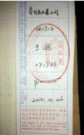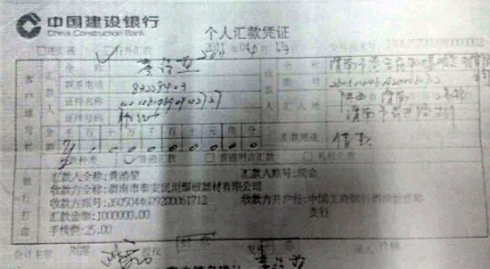 民爆公司原負(fù)責(zé)人張女士拿出一張匯給王某的匯款憑證說:“在收到王某的妻子黃某某匯給我公司的100萬的半年前,我們就給王某匯了100萬想?yún)⑴c那個(gè)項(xiàng)目,但后來感覺不保險(xiǎn),就要我們的資金?!?/p>