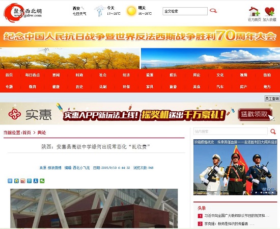 截止發(fā)稿時,記者始終沒有得到延安市安塞縣高級中學對該校巧言名目亂收費問題的調查回復,我們將持續(xù)關注相關方面對有關問題的調查及處理情況。