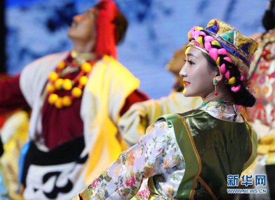 新華社照片,拉薩,2015年9月7日慶祝西藏自治區(qū)成立五十周年文藝晚會在拉薩舉行9月7日晚,慶祝西藏自治區(qū)成立50周年文藝晚會《中國夢·雪山歡歌》在拉薩舉行。這是演出現(xiàn)場。新華社記者謝環(huán)馳攝