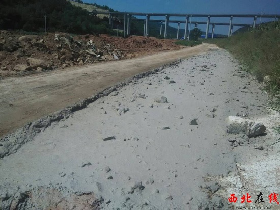8月24日,記者在當(dāng)?shù)卮迕竦囊I(lǐng)下來(lái)到甘泉縣道鎮(zhèn)鎮(zhèn)東溝村福建省第二公路工程有限公司承建的黃延高速公路擴(kuò)能工程LJ-12合同段混泥土拌合站進(jìn)行實(shí)地采訪,通過(guò)記者現(xiàn)場(chǎng)仔細(xì)觀察,該拌合站占用了村里二十多畝基本農(nóng)田建拌合站,拌合站的場(chǎng)地用混泥土澆筑,厚度有二三十公分。