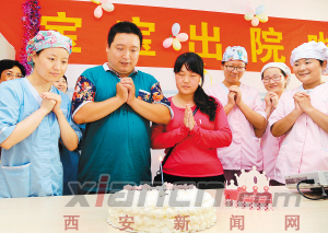 寶寶的父母與醫(yī)護(hù)人員為寶寶許愿祝福