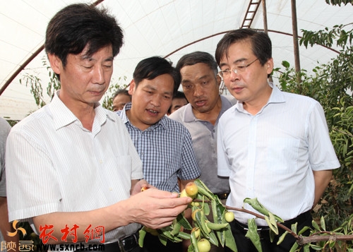 大荔縣縣委書記孫云峰(左一)調(diào)研許莊千畝高標(biāo)準(zhǔn)冬棗示范園(圖片來源:大荔縣政府網(wǎng))